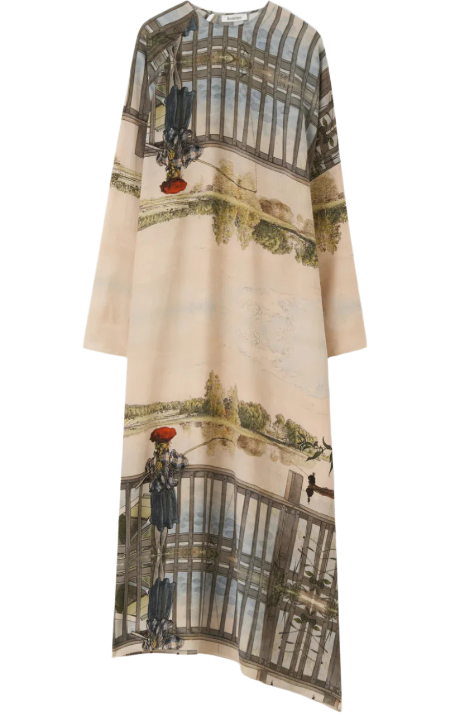 As part of our collaboration with Carl Larsson, the Marge dress arrives illustrated with the Swedish painter's artworks. Cut to a relaxed silhouette, it falls easily down the figure, and is detailed with one raglan and one dropped sleeve for added visual interest.
